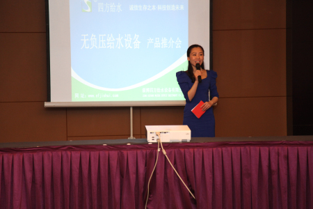 2016年4月29日,淄博四方“新型無負壓給水設備產(chǎn)品推介會”在濱州隆重召開。會議邀請了濱州市相關單位的領導,以及各房地產(chǎn)開發(fā)公司的主要客戶等蒞臨參加。
