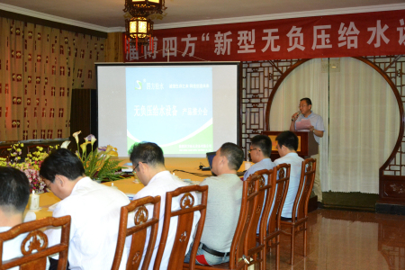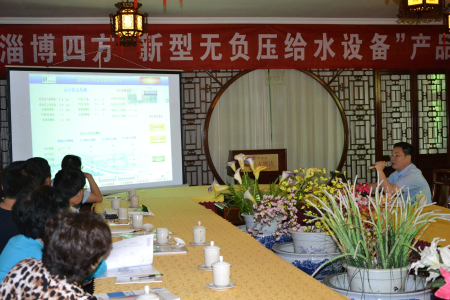2016年6月13日,淄博四方“新型無負(fù)壓給水設(shè)備產(chǎn)品推介會”在濟(jì)南章丘召開。會議有公共事業(yè)局、開發(fā)商及用戶等單位蒞臨參加。